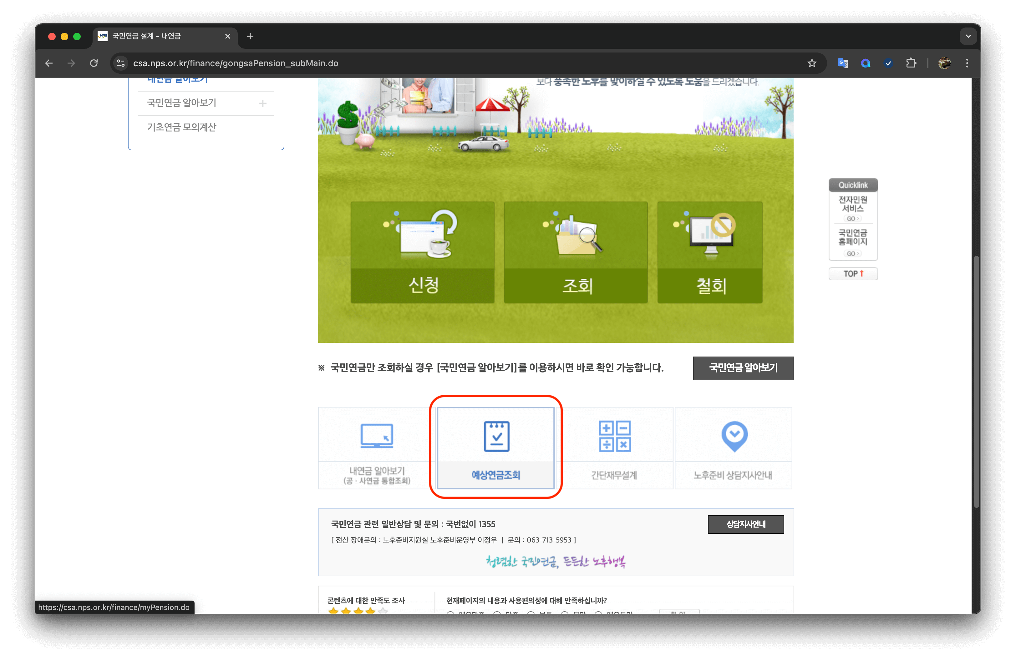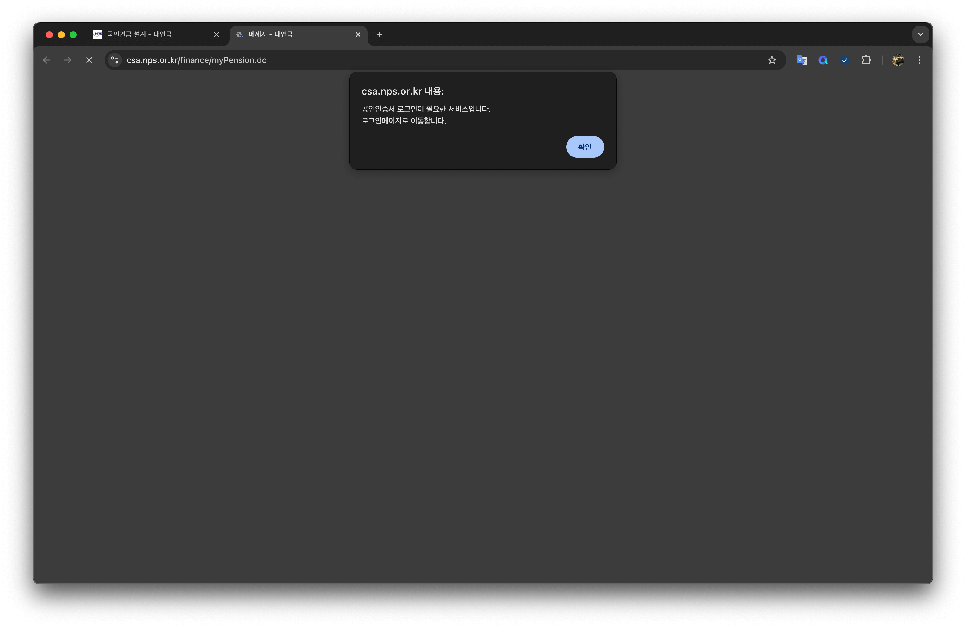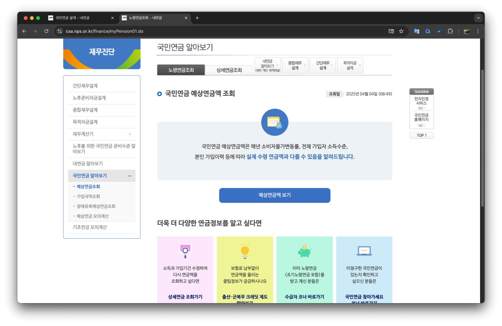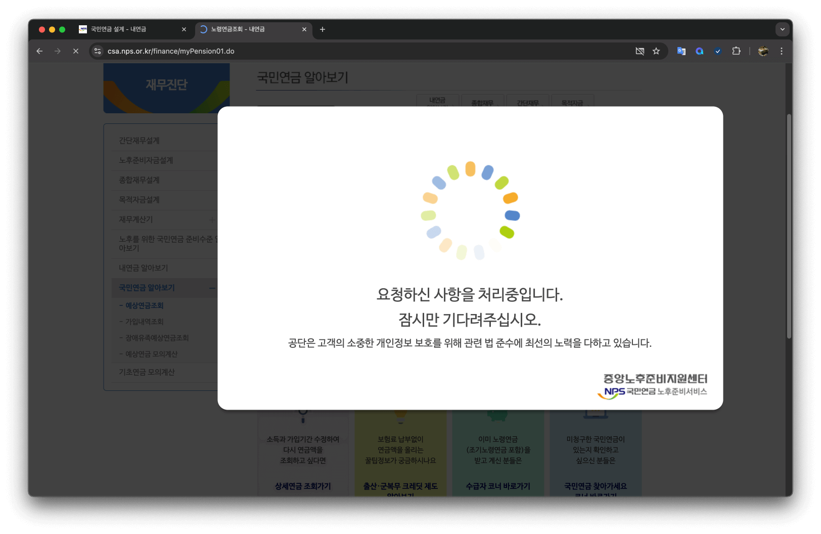 로그인 후에는 자동으로 연금조회 페이지로 이동하게 됩니다.
