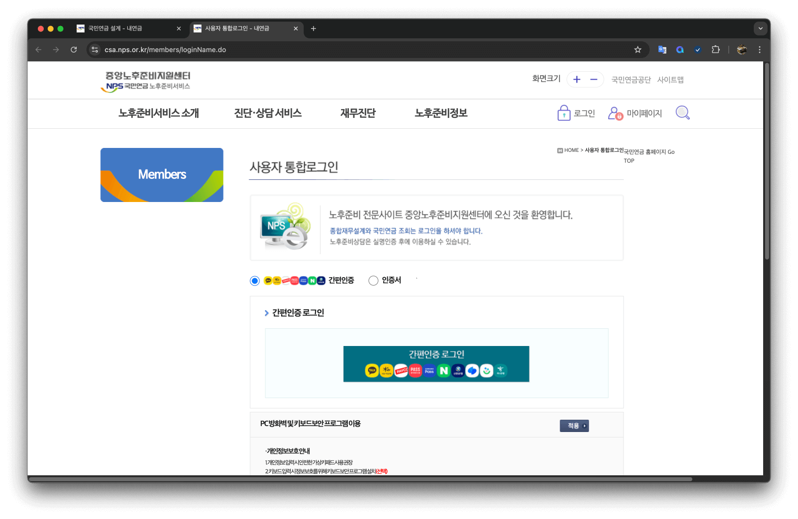 연금 조회는 민감한 개인 정보를 포함하므로 로그인 절차가 필요합니다.