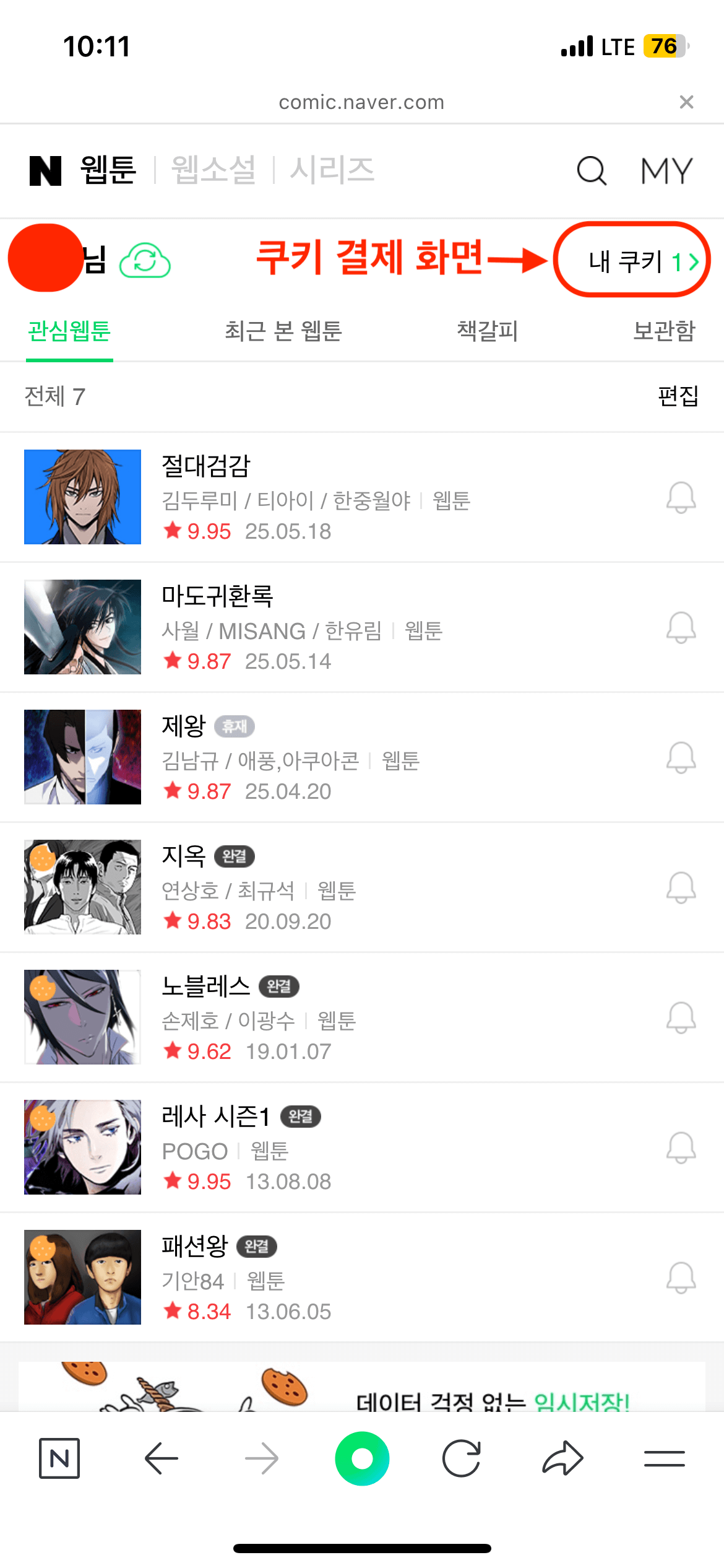 네이버웹툰을 즐겨보신다면, 한 번쯤은 쿠키 결제를 해보신 적이 있으실 텐데요.