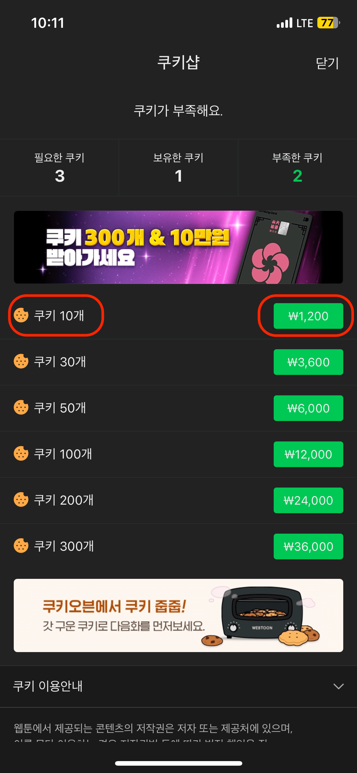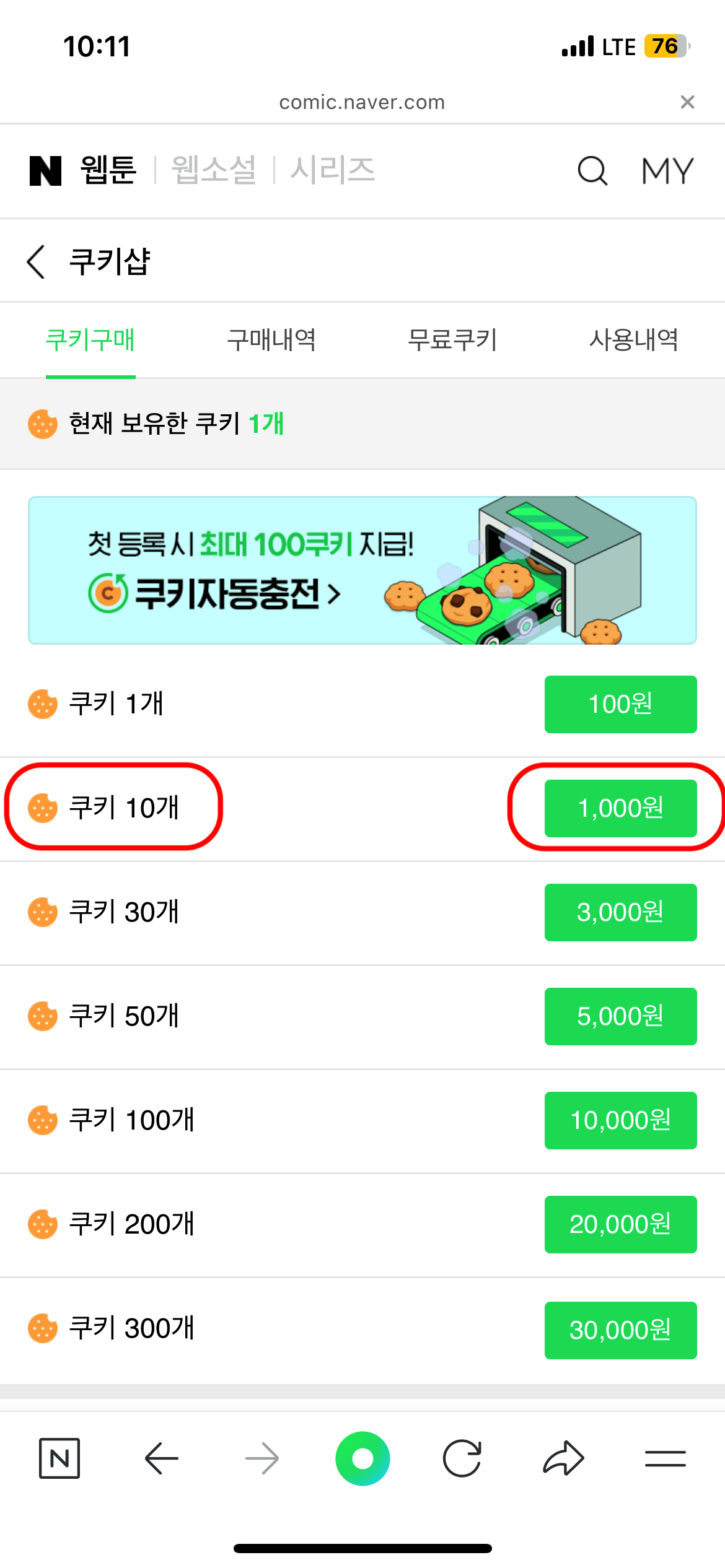 네이버웹툰 앱에서 쿠키를 결제하면 얼마일까?