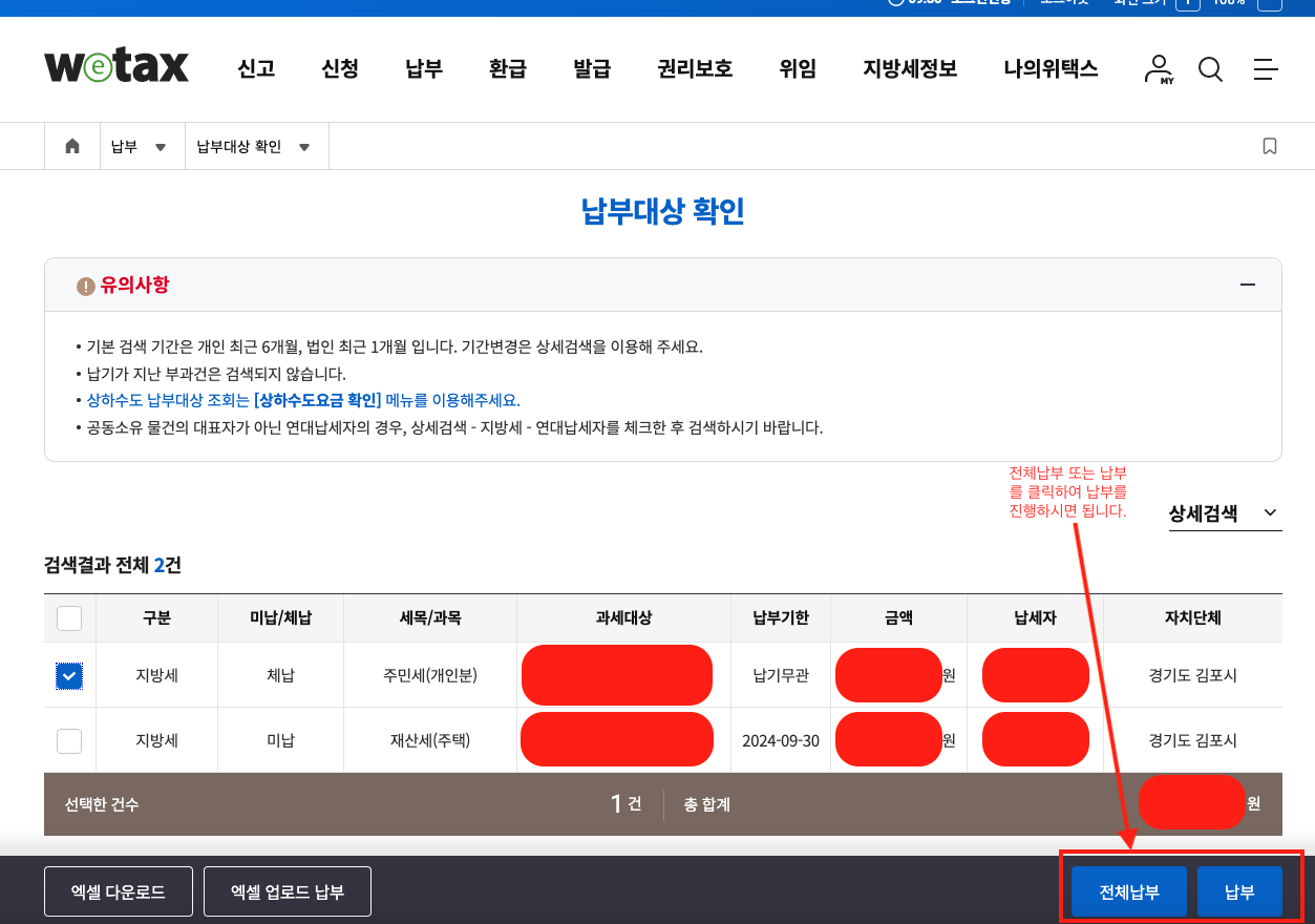 2.납부대상 확인