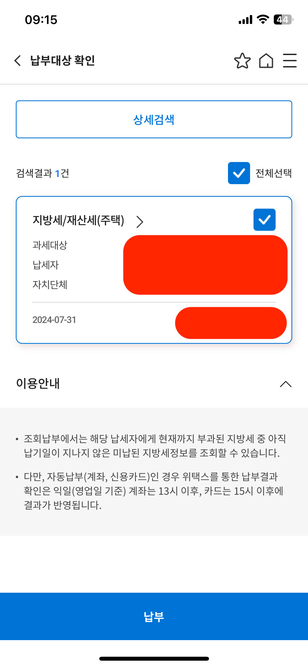 7월 31일까지 재산세를 납부해야 하기 때문에 안남았지만, 지금이라도 바로 재산세를 납부하셔서 가산세를 내야 하는 불상사가 일어나지 않기를 바라겠습니다.